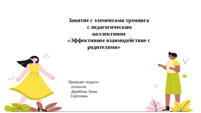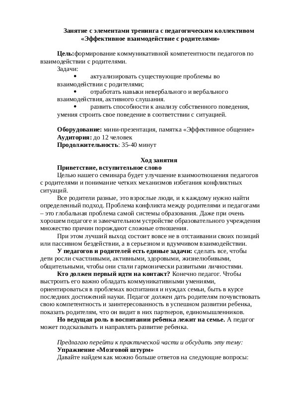 Занятие С Элементами Тренинга С Педагогическим Коллективом Эффективное Взаимодействие С Родителями