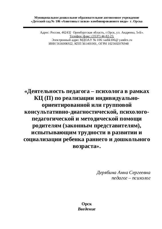 Доклад Формы Работы Консульт. Центр Мдоау 106