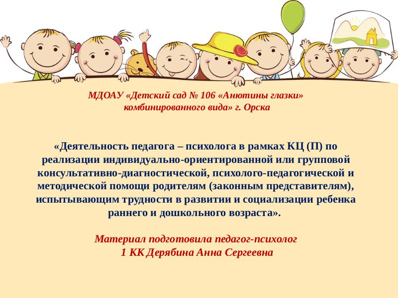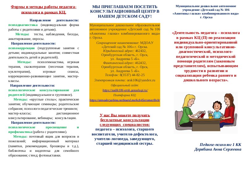 Консультационно- методический Центр (КмЦ) МДОАУ "Детский сад № 106 "Анютины глазки"