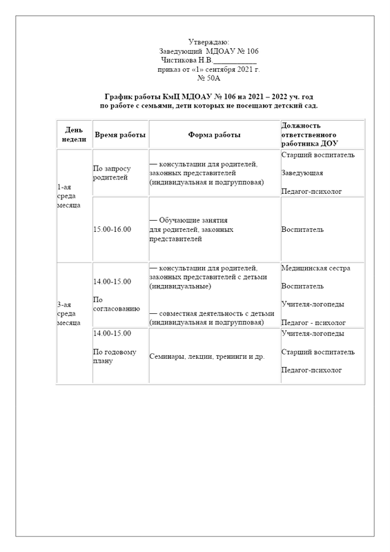 График Работы Кмц
