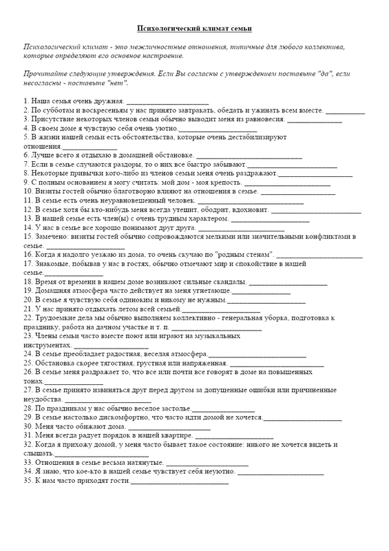 Анкета Для Родителей Псих. Климат В Семье