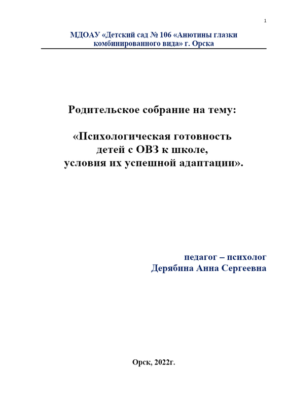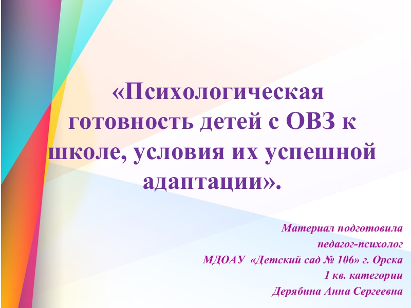 Психологическая готовность детей с ОВЗ к школе.