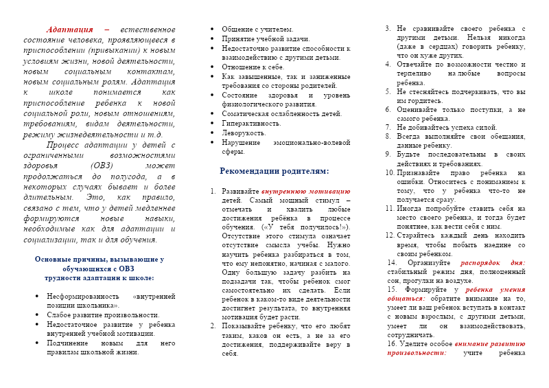 Памятка Родителям Советы Успешной Адаптации Детей С Овз К Школе